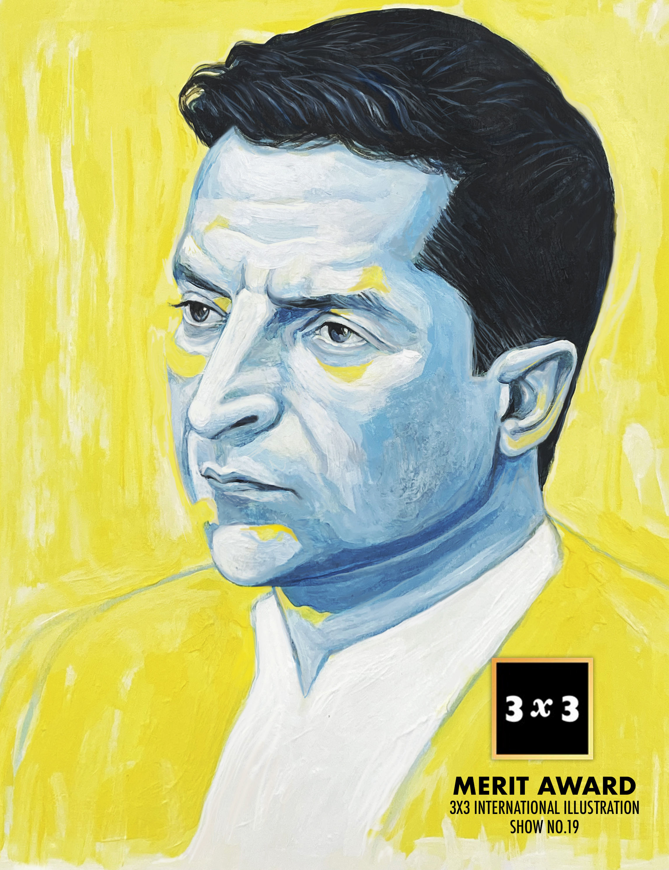 “Blue Over Yellow", Winner at 3x3 International Illustration Annual. Acrylic on Bristol paper.